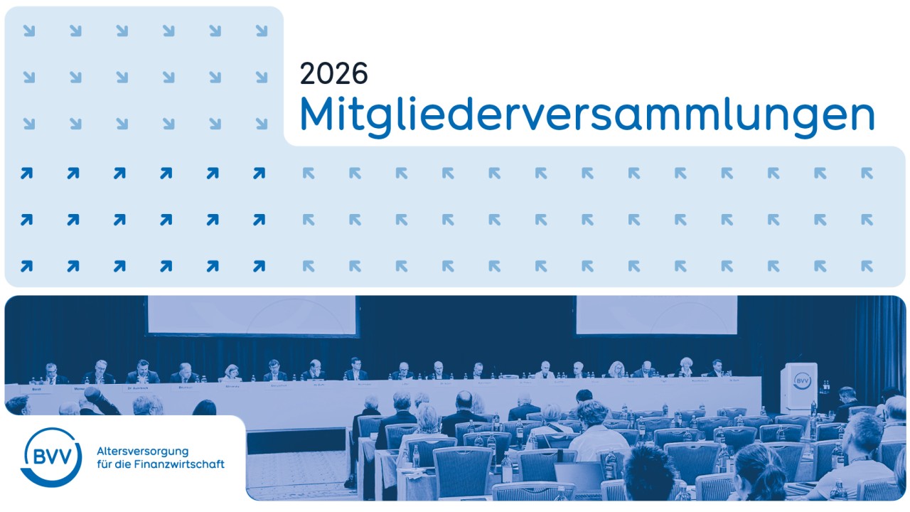 Es werden die 27. Ordentliche Mitgliederversammlung des BVV Versorgungskasse des Bankgewerbes e.V. und die 113. Ordentliche Mitgliederversammlung des BVV Versicherungsverein des Bankgewerbes a.G. sein.